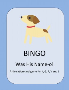 I’m a dog person, terriers especially, so I couldn’t resist these adorable Jack Russell terriers for “Bingo!” To play the game, simply print a game mat for each player as well as a deck of target specific cards. The decks included are initial and final: K, G, F, V and L, but you can mix and match as needed. If everyone is working on the same goal, simply place the cards, target side up, in the middle of play. You will want approximately 10 cards/player in the deck. (If everyone is working on a different target, simply compile an appropriate deck of 15-20 cards/player to place in front of individuals.)