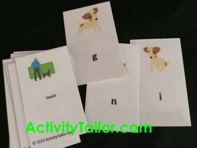 On your turn, say the target word on your card, then flip it over and match the letter/picture to the appropriate space on your game board. The first player to spell “Bingo” is the winner!
