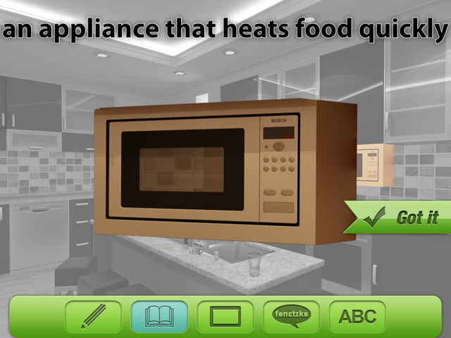 The app contains fifty (50) common household objects and has settings for English, Spanish, and Portuguese. For more information click here.